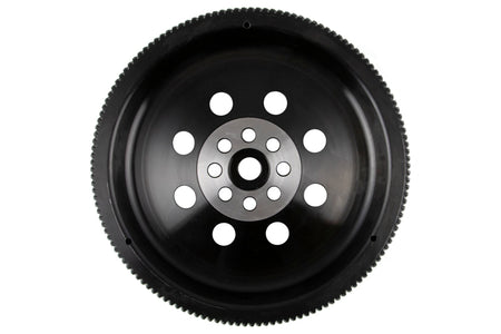 Noticeably improved engine response and acceleration, OE to mild gear rattle; Heat-treated forging for strength and toughness, induction-hardened ring gears for maximum life; One piece construction allows less opportunity for failure and provides uniform efficient heat transfer from the clutch disc. No more warped inserts or loose ring gears; Recommended for street and race use; Forged, CNC machined and dynamically computer balanced for smooth high RPM reliability