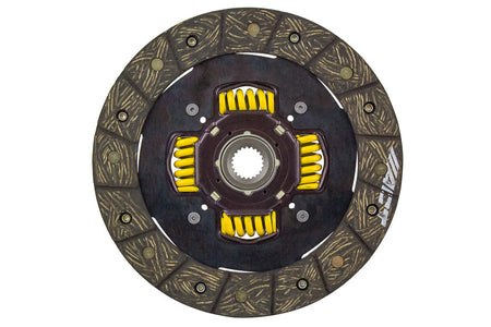 3000103 is a performance street disc and the most popular disc purchased. It features premium organic materials with high copper content for better heat transfer. Performance street discs allow for quicker shifting and smooth engagement. These discs feature a reduced marcel for faster shift action to complement ACT pressure plates. ACT spring-centered assemblies use bushings and cone springs similar to factory clutch discs. This creates frictional dampening, which improves clutch life and reduces noise. Quiet operation with increased strength and reliability.