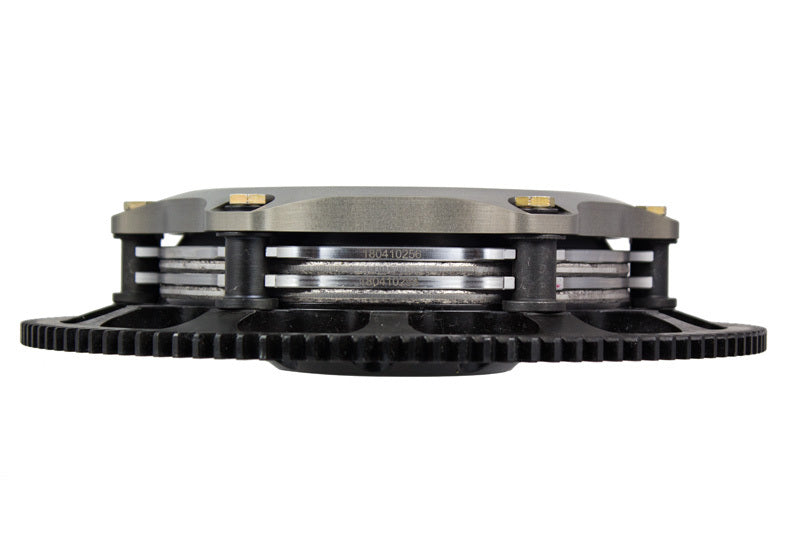 T1RR-H03 race, twin disc kits are race-ready for the serious enthusiast who needs a direct bolt-in kit, requiring no additional modifications. ACT's sintered iron race discs offer the highest torque capacity of all ACT race discs and have ultra-high heat capacity. Most kits offer pedal loads 10-20% higher than stock, yet increasing the clamp load by 80-90%. All ACT twin disc kits include a CNC-machined and dynamically balanced flywheel for trouble free use. All kits undergo an exclusive four-stage, heat-treating process on all diaphragms. ACT twin disc kits include a pressure plate, two discs, floater, flywheel and alignment tool. Some kits may include a pilot bearing and release bearing. ACT Twin disc kits meet SFI Specification 1.2.