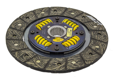 3000812 is a performance street disc and the most popular disc purchased. It features premium organic materials with high copper content for better heat transfer. Performance street discs allow for quicker shifting and smooth engagement. These discs feature a reduced marcel for faster shift action to complement ACT pressure plates. ACT spring-centered assemblies use bushings and cone springs similar to factory clutch discs. This creates frictional dampening, which improves clutch life and reduces noise. Quiet operation with increased strength and reliability.