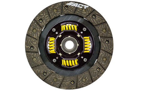 3000114 is a performance street disc and the most popular disc purchased. It features premium organic materials with high copper content for better heat transfer. Performance street discs allow for quicker shifting and smooth engagement. These discs feature a reduced marcel for faster shift action to complement ACT pressure plates. ACT spring-centered assemblies use bushings and cone springs similar to factory clutch discs. This creates frictional dampening, which improves clutch life and reduces noise. Quiet operation with increased strength and reliability.