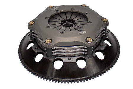 T2R3-T01 race, triple disc kits are race-ready for the serious enthusiast who needs a direct bolt-in kit, requiring no additional modifications. ACT's sintered iron race discs offer the highest torque capacity of all ACT race discs and have ultra-high heat capacity. All ACT triple disc kits include a CNC-machined and dynamically balanced flywheel for trouble free use. All kits undergo an exclusive four-stage, heat-treating process on all diaphragms. ACT triple disc kits include a pressure plate, three discs, two floaters, and flywheel. Some kits may include a pilot bearing and release bearing. ACT Triple disc kits meet SFI Specification 1.2.