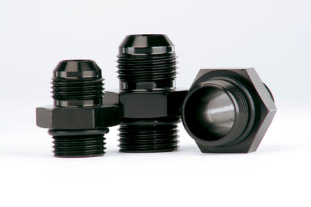 For use with the A2000 Fuel Pump ? P/N 11202 Contains: (2) AN-10 to AN-10 Male Flare Fittings ? P/N 15608 (1) AN-08 to AN-08 Male Flare Fittings ? P/N 15607 O-Rings More area and smoother transitions from the inlet to the outlet, resulting in less restriction than any other fitting line. The Aeromotive line of custom fittings, adapters and hose-ends are a step above the norm, offering uncompromised fuel flow and positive sealing. Constructed of 6061 T6 aircraft grade aluminum or stainless steel, each component is CNC-machined for precision fit and unmatched flow. All billet aluminum fittings are anodized Type II bright dip black for corrosion protection and unrivaled aesthetics. We offer a complete line of hard to find fittings from OEM specific connections to AN adapters.?All Aeromotive fittings and adapters are fully compatible with gasoline and alcohol based fuels.