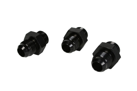 Contains (3) ORB-06 to AN-06 Male Flare Fittings P/N 15606. Ideal for use with regulators equipped with ORB-06 ports where AN-06 fuel line connections are desired. Fits various Aeromotive EFI and Carburetor regulators including: (EFI Regulators P/N 13109, 13138, 13129) (Carburetor Regulators P/N 13201, 13211, 13203, 13204, 13224). Aeromotive port fittings provide maximum flow area and a long radii for smoother transitions from the inlet to the outlet, eliminating fitting cavitation and flow restrictions. The Aeromotive line of custom fittings, adapters and hose-ends are a step above the norm, offering uncompromised fuel flow and positive sealing. Constructed of 6061 T6 aircraft grade aluminum or stainless steel, each component is CNC-machined for precision fit and unmatched flow. All billet aluminum fittings are anodized Type II bright dip black for corrosion protection and unrivaled aesthetics. We offer a complete line of hard to find fittings from OEM specific connections to AN adapters. All Aeromotive fittings and adapters are fully compatible with gasoline and alcohol based fuels.