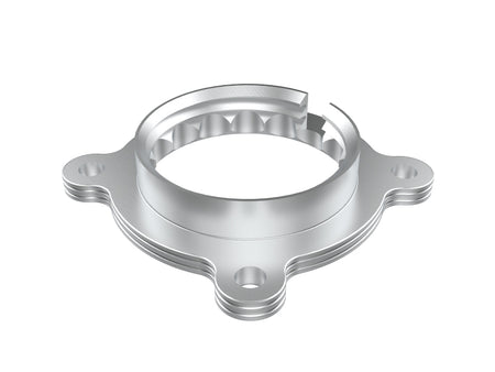 The Serrated/Helix combination design creates intake turbulence in the combustion chamber. This turbulence breaks up the fuel which creates a more complete combustion cycle increasing horsepower, torque and improving throttle response. The Serrated/Helix combination design also reduces intake whistle that occurs with Helix only designs. All Silver Bullet Throttle Body Spacers are constructed from 6061-T6 billet aluminum precision machined for light weight, high strength and perfect fit and finish. This Silver Bullet throttle body spacer uses all factory mounting locations providing stability and a hassle-free installation.
