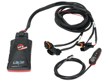 The aFe POWER SCORCHER BLUE Power module is the next generation of plug-and-play electronic module technology. It is the fastest way to safely gain significant horsepower, torque and improve drivability without modifying or leaving any trace on the Engine Control Unit (ECU). The SCORCHER BLUE features an LED control switch for in-cabin, on-the-fly power adjustments with different preset modes. With Bluetooth connectivity you can tap into your iOS or Android device to make power adjustments, custom tune different power modes, view gauges for engine parameters, upgrade to the latest version, measure acceleration times and more. The app is downloadable for free on the App Store or Google Play store. aFe POWER strongly recommends upgrading the factory spark plugs to high performance spark plugs to maintain a stronger, more consistent spark and prevent any damage to your engine. During our testing we used HKS M45XL spark plugs and recommend those spark plugs or equivalent. Alternatively, the factory spark plug gap can be closed to 0.026” or smaller. aFe POWER recommends the use of high octane fuel for these settings: Sport (Yellow LED) : 91 Octane or Higher is recommended. Sport+ (Orange LED) : 91 Octane or Higher is recommended. Race (Red LED) : 93 Octane or Higher is recommended.