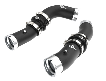 Smooth transitions in the mandrel-bent aluminum pipes decrease turbulence and minimize pressure loss, increasing horsepower and torque. This charge pipe kit provides a smooth transition between the turbo and the engine for lower operating temperatures and increased power. This kit includes high-quality, stainless-steel, SmartSeal clamps and heavy-duty, 5-ply, polyester reinforced silicone couplings. This charge pipe kit also features factory style billet aluminum quick-connect adapters with o-ring seals to ensure a leak-free fit while maintaining superior strength and durability. Finished in wrinkle black powder coating with a unique laser-etched aFe POWER logo for a custom look.