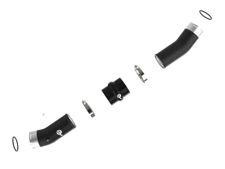 Smooth transitions in the mandrel-bent aluminum pipes decrease turbulence and minimize pressure loss, increasing horsepower and torque. This kit includes high-quality, stainless-steel, SmartSeal clamps and a heavy-duty, 5-ply, polyester reinforced silicone coupling. This charge pipe kit also features factory style billet aluminum quick-connect adapters with o-ring seals to ensure a leak-free fit while maintaining superior strength and durability. Finished in wrinkle black powder coating with a unique laser-etched aFe POWER logo for a custom look.