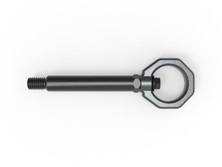 Add aggressive styling, and useful functionality to your G87 M2 with aFe Control’s tow hook. Its sleek design not only looks great but is strong enough to safely winch your car onto a tow truck or get towed trackside if the need arises. Our tow hook can be installed in the front or rear of the vehicle. Our BMW specific CNC machined stem and loop is made of 4130 steel. The stem is black zinc coated for corrosion resistance. The loop is powder coated Gray (Blue, Black, and Red are available). This is not a universal tow hook. The stem was specifically designed for the G87 M2 and the length was carefully determined to fit both front and rear bumper. Both the stem and bolt threads are pre-coated with Vibra-tite threadlocker. This keeps your tow hook from loosening due to vibration. The special threadlocker is designed to remain flexible, removable, and reusable.