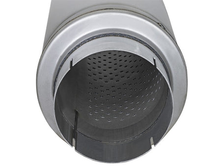 The aFe Universal fit Aluminized Steel Performance Muffler is designed to provide a deep, throaty, powerful sound on acceleration, but maintain a smooth sound at idle. This muffler is constructed of brushed finished aluminized steel and uses a straight through perforated core with heat resistant packing to reduce backpressure and maximize exhaust flow. You will see increased performance and improved throttle response over the factory exhaust. Also featuring a stamped aFe Power logo for an aggressive style. Muffler Specifications: 7" Center Inlet /Outlet, 24"L Body Diameter. All aFe exhaust systems are engineered and manufactured in our Corona, California manufacturing facility.