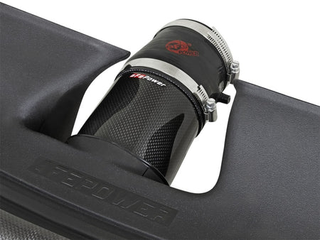 Unique computer Designed Housing: A custom CAD plastic housing encloses the dual performance air filters. This roto-molded housing is made out of black cross-linked polyethylene and mounts directly into the factory mounting location. It also connects to the factory air inlets to capture the coolest air available. Carbon Fiber Intake Tube: Lightweight high gloss clear-coated plain weave carbon fiber tube directs the filtered air from the dual air filters to the engine. It is computer designed and tested to increase air flow while reducing weight and enhancing the visual appearance of the engine bay. Carbon Fiber Cover: This unique carbon fiber cover is also lightweight high gloss clear-coated plain weave carbon fiber and closes off the housing from unwanted hot engine air. It features a serialized Black Series emblem for authenticity and is secured to the housing using aFe POWER laser etched washers and bolts. This cover will enhance your engine bay appearance. 8% Weight Reduction: This air intake system offers a 8% reduction versus the factory air intake system, thanks to the extensive use of carbon fiber material. 2 Sets Of Performance Air Filters: This Black Series intake system offers the option to use a pre-oiled or oil-free 360 degree radial flow performance air filters. Each kit comes with two pairs of large 7" tall inverted top conical air filters (Total of 4): One set constructed in our 5-layer progressive oiled media (Pro 5R) for maximum airflow and performance, and the other made out of our 3-layer synthetic oil-free media (Pro DRY S) for maximum convenience. Premium Hardware: Premium stainless steel clamps, a reinforced silicone coupler and polyurethane sleeve housing inserts are used for strength and durability while also providing the most secure installation available.