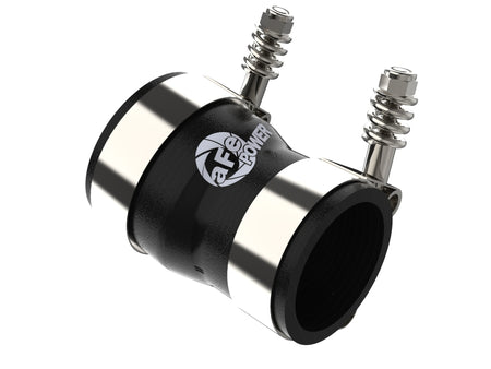 aFe POWER BladeRunner turbo muffler delete pipe replaces the factory turbo muffler located between the turbo compressor outlet and the hot side charge pipe. The straight through oversized design tremendously increases flow and turbocharger sound by creating a smooth transition between the turbo and intercooler tube. CNC machined from 6061-T6 aluminum then finished in red anodizing also provides superior strength and long lasting durability. This turbo muffler delete kit includes high-quality, stainless-steel, spring-loaded T-bolt clamps and a heavy-duty, 5-ply, polyester reinforced silicone coupling for superior strength and durability. Finished with Red Anodizing and a unique laser-etched aFe Power logo for a custom look. Designed to work with the OE charge pipes only. this item will not work with aFe charge pipe PN: 46-20414-B.