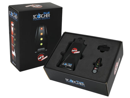 aFe POWER SCORCHER BLUE Power modules are the next generation of plug-and-play electronic module technology. It is the fastest way to safely gain significant horsepower, torque and improve drivability without modifying or leaving any trace on the Engine Control Unit (ECU). The SCORCHER BLUE features an LED control switch for in-cabin, on-the-fly power adjustments with different preset modes. With Bluetooth connectivity you can tap into your iOS or Android device to make power adjustments, custom tune different power modes, view gauges for engine parameters, upgrade to the latest version, measure acceleration times and more. The app is downloadable for free on the App Store or Google Play store. The SCORCHER BLUE Power module increases turbo boost and overall vehicle performance, producing double-digit power gains on our in-house dyno. Designed with factory-style connectors, it easily connects to engine sensors for a quick and simple install. The LED control switch can be routed through the firewall into the cabin or connect to the module via Bluetooth with the smartphone app. In-cabin, on-the-fly power adjustments can be made to accommodate your driving needs. Select one of four power settings on the in-cab LED control switch or control the module remotely via the free iOS or android app. The smartphone connects to the module via Bluetooth and displays engine parameters (MAP). This power module has four power settings loaded and identifiable with the LED light on the switch or smartphone app: Stock (Green), Sport (Yellow), Sport+ (Orange) and Race (Red). The SCORCHER BLUE module is Bluetooth 4.0 capable and can connect to most iOS or Android devices. Bluetooth connectivity allows control of the module from you mobile device without the need to run any wires through the firewall.