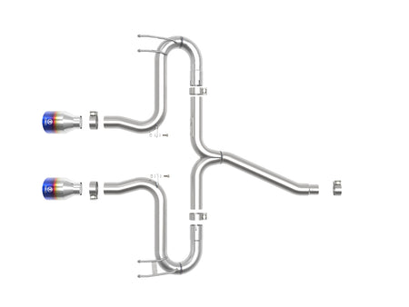 2-1/2" 304 Stainless Steel Construction: This axle-back exhaust system is constructed of 2-1/2" mandrel-bent 304 stainless steel tubing for maximum strength and durability.Dual 4-1/2" Diameter Blue Flame Exhaust Tips: Finishing off this exhaust system are dual 4-1/2" diameter blue flame 304 stainless steel clamp-on exhaust tips.Installation: Requires cutting factory exhaust. Utilizing factory style hangers this system mounts directly to factory mounting locations for a hassle-free installation.Integrated Mitered Merge Collector: A mitered merge collector is used to decrease turbulence and increase exhaust velocity resulting in increased horsepower, torque and improved throttle response.Computer-Aided Design: Utilizing state-of-the-art computer-aided design technology, this exhaust system is designed for custom, high tolerance factory fitment.MIG-Welded: 100% MIG-Welded for race-proven strength and durability.Note: Some cutting is required, see instruction sheet for further information.Emissions Disclaimer: This product does not require a CARB EO#.aFe POWER exhaust systems are engineered and manufactured in our Corona, California facility.