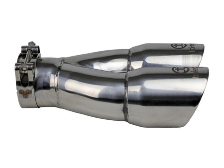 aFe Takeda 2.5in 304 Stainless Steel Clamp-on Exhaust Tip 2.5in Inlet 3in Dual Outlet - Polished