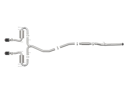 Performance Gains: This system produced gains of up to +6 HP and +5 lbs. x Ft. TQ., as measured on our in-house dyno.3" - 2-1/2" 304 Stainless Steel Construction: This cat-back exhaust system is constructed of 3" - 2-1/2" mandrel-bent, brushed finished 304 stainless steel tubing for maximum strength and durability.High-Flow 304 Stainless Steel Polished Mufflers: This system features high-flow 304 stainless steel polished mufflers, producing a smooth sound. The mufflers has a polished finish for ultimate corrosion resistance.Dual 4-1/2" Diameter Carbon Fiber Exhaust Tips: Finishing off this exhaust system are dual 4-1/2" diameter carbon fiber 304 stainless steel clamp-on exhaust tips. The tips features an aFe POWER logo for a unique style.Installation: Utilizing a factory style flange and hangers this system is a direct bolt-on system, which requires no cutting or modifications for a hassle-free installation.Integrated Mitered Merge Collector: A mitered merge collector is used to decrease turbulence and increase exhaust velocity resulting in increased horsepower, torque and improved throttle response.Computer-Aided Design: Utilizing state-of-the-art computer-aided design technology, this exhaust system is designed for custom, high tolerance factory fitment.TIG-Welded: 100% TIG-Welded for race-proven strength and durability.Emissions Disclaimer: This product does not require a CARB EO#.aFe POWER exhaust systems are engineered and manufactured in our Corona, California facility.