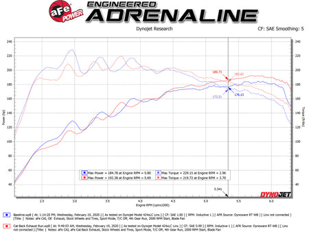 Performance Gains: This system produced gains of up to +11 HP and +10 lbs. x Ft. TQ., as measured on our in-house dyno. 3" - 2-1/2" 304 Stainless Steel Construction: This cat-back exhaust system is constructed of 3" - 2-1/2" mandrel-bent 304 stainless steel tubing for maximum strength and durability. Dual 4-1/2" Diameter Black Exhaust Tips: Finishing off this exhaust system are dual 4-1/2" diameter black 304 stainless steel clamp-on exhaust tips. The tips feature a laser etched Takeda logo for a unique style. Powerful Sound: This system produces a powerful sound unleashing all available horsepower and torque. Installation: Some cutting may be required, see instruction sheet for further information. Utilizing factory style flanges and hangers this system mounts directly to factory mounting locations for a hassle-free installation. Integrated Mitered Merge Collector: A mitered merge collector is used to decrease turbulence and increase exhaust velocity resulting in increased horsepower, torque and improved throttle response. Computer-Aided Design: Utilizing state-of-the-art computer-aided design technology, this exhaust system is designed for custom, high tolerance factory fitment. MIG-Welded: 100% MIG-Welded for race-proven strength and durability. Resonator: This system features a 4" x 16" 304 stainless steel resonator to reduce drone. An optional resonator delete pipe is available (PN 49-36622). Emissions Disclaimer: This product does not require a CARB EO#. aFe POWER exhaust systems are engineered and manufactured in our Corona, California facility.