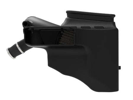This aFe POWER Pro DRY S is a 7-1/2” tall, oil-free, 360-degree radial flow performance air filter with three layers of synthetic media for maximum convenience. Its progressive layering provides great filtration efficiency and dust holding capacity, while not requiring the use of oils. This media is best suited for street and light off-road use. Its inverted top makes for more filter surface area, resulting in more flow and longer service intervals. The included massive air filter is surrounded by an open-element XLPE (cross-linked polyethylene) polymer housing that minimizes warm engine air for maximum performance. Its open design allows for easy viewing of the air filter, yet creates a heat-blocking seal when the vehicle's hood is closed. It features a built-in ram air scoop that captures additional cool air from behind the front grille. This system features a high quality, CAD-designed, dyno-tuned intake tube to achieve maximum power gains while maintaining a perfect fit. Its XLPE material is heat soak resistant, extremely durable, and features a Takeda design inspired by import vehicles. The system is CAD-designed and utilizes factory mounting locations – making for a hassle-free, direct bolt-on installation process that requires no cutting or drilling on OEM parts. Its revolutionary design, featuring our patent pending filter-to-housing interface, uses half the number of parts of a traditional cold air intake system. An included billet aluminum fitting allows OE connections to transfer over seamlessly.