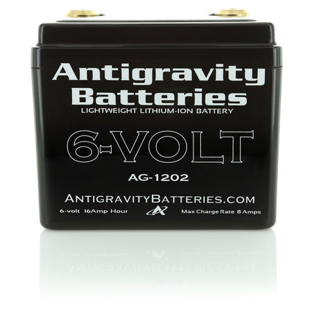 The AG-1202 is a 6-Volt 12-Cell Lithium-Ion battery in a small case. This battery is made for those who ride classic older bikes or vehicles that run the 6-Volt system. It is a very reliable compact replacement for the bulky and large 6-Volts of the past.