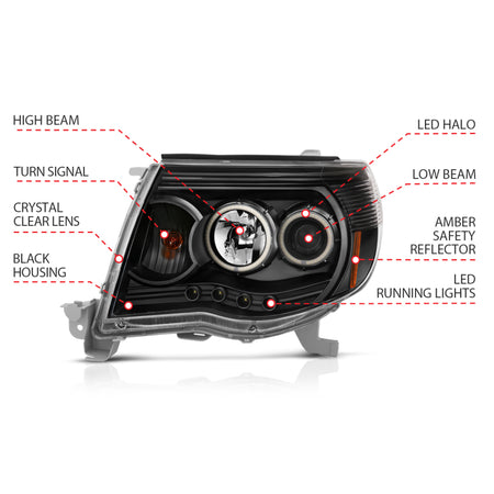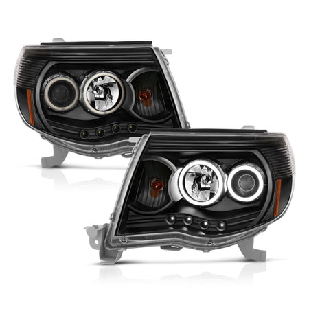 ANZO 2005-2011 Toyota Tacoma Projector Headlights w/ Halo Black