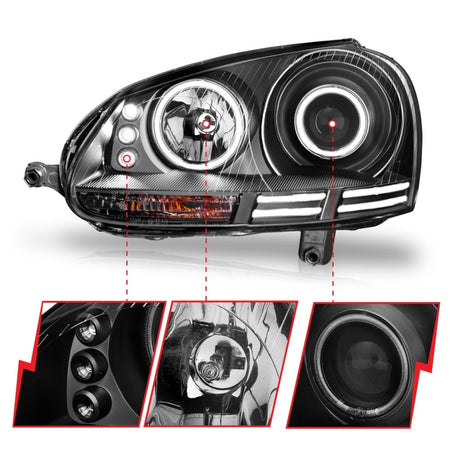 ANZO 2006-2009 Volkswagen Rabbit Projector Headlights w/ Halo Black (CCFL)