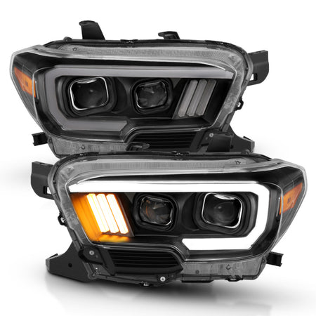 ANZO 2016-2017 Toyota Tacoma Projector Headlights w/ Plank Style Design Black/Amber w/ DRL