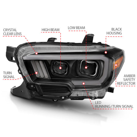 ANZO 2016-2017 Toyota Tacoma Projector Headlights w/ Plank Style Switchback Black w/ Amber