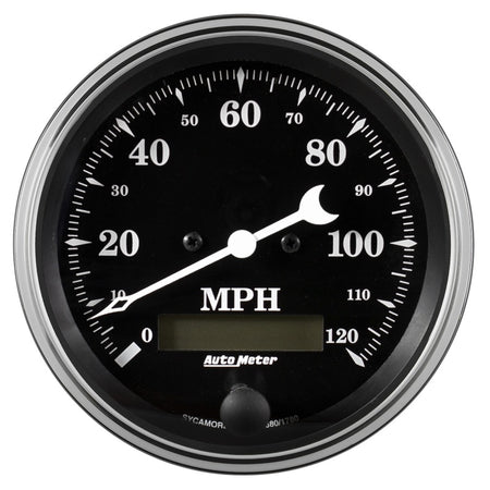 Auto Meter Gauge Speedo. 3 3/8in 120mph Elec. Prog. w/ LCD Odo Old Tyme Black