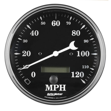 Auto Meter Gauge Speedo. 5in 120mph Elec. Prog. w/ LCD Odo Old Tyme Black