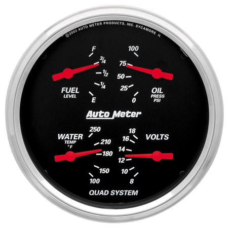Autometer Designer Black 5in Quad Gauge - Fuel Level / Oil Pressure / Water Temperature / Voltmeter