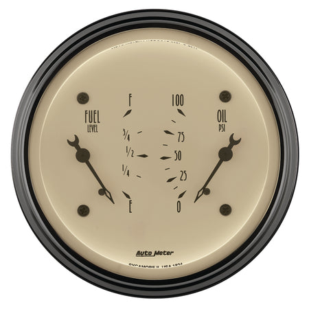 AutoMeter Gauge Dual Fuel & Oilp 3-3/8in. 0 Ohm(e) to 90 Ohm(f)& 100PSI Elec Antq Beige