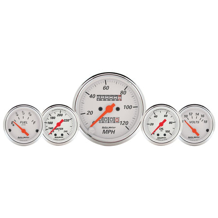 AutoMeter Gauge Kit 5 Pc. 3-1/8in. & 2-1/16in. Mech. Speedo. Wtmp & Oilp Arctic Wht