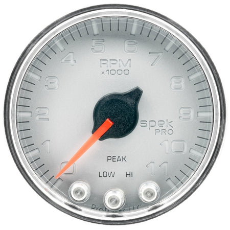 Autometer Spek-Pro Gauge Tach 2 1/16in 11K Rpm W/ Shift Light & Peak Mem Slvr/Chrm