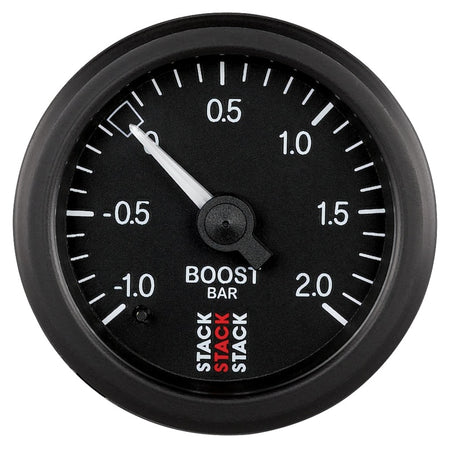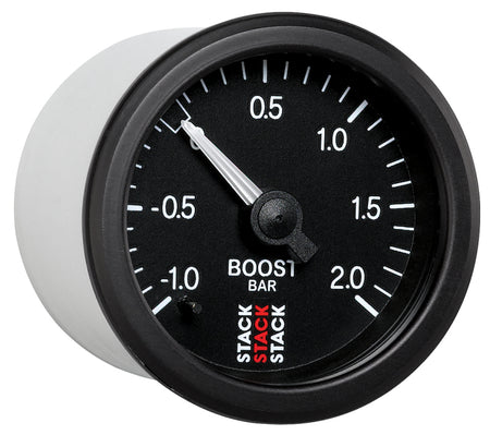 Autometer Stack 52mm -1 to +2 Bar T-Fitting 0.187in Barb (M) Mechanical Boost Pressure Gauge - Black