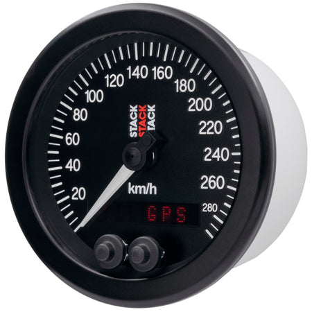Stack Professional GPS Speedometers utilize the latest satellite signal technology to simplify instrument installation and accurately register vehicle speed. The included high-speed (10 Hz) omnidirectional micro antenna offers exceptional mounting versatility and eliminates the need for recalibrations associated with conventional speedometers when making adjustments to vehicle gearing or wheel circumference. Inboard configurable LED digital display indicates odometer, trip odometer, time/date, position coordinates, heading data, compass, peak speed recall, and performance meter acceleration and braking tests.