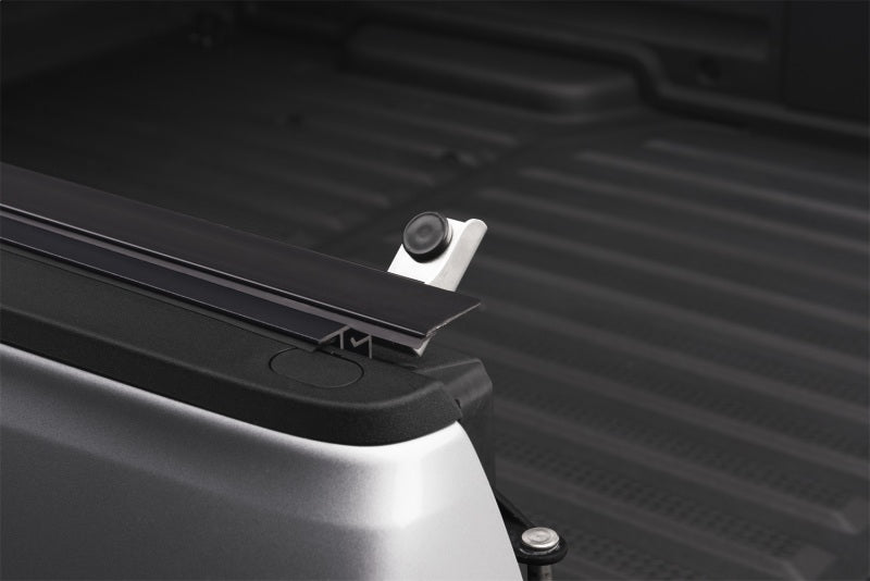 The Revolver X2 hard rolling truck bed cover features exclusive automatic rotational locking rails that secure the cover the entire length of the bed on each side. This hard aluminum roll-up cover easily rolls up with one-handed operation and allows use of every inch of the truck bed without blocking your rear window. This cover does it all with unrivaled strength, security and style.