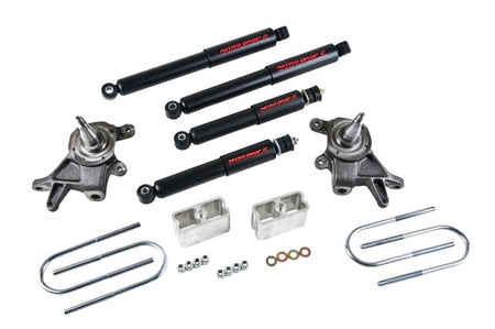 Lower your Sport Truck or SUV right the first time. Belltech Nitro Drop 2 complete lowering kits include all the parts, pieces and shock absorbers you need to achieve not only the look you WANT, but the ride quality, performance & safety you NEED. Belltech engineers have reviewed the most popular setups for each Sport Truck or SUV in our application range and developed the Belltech Complete Kit Line to simplify your purchase. These complete lowering kits are your all in one box solution. Made up of a variety of combinations of our individual lowering components as well as all the grade 8 installation hardware and alignment pieces necessary to achieve the advertised lowering amount, choosing your kit has never been simpler.