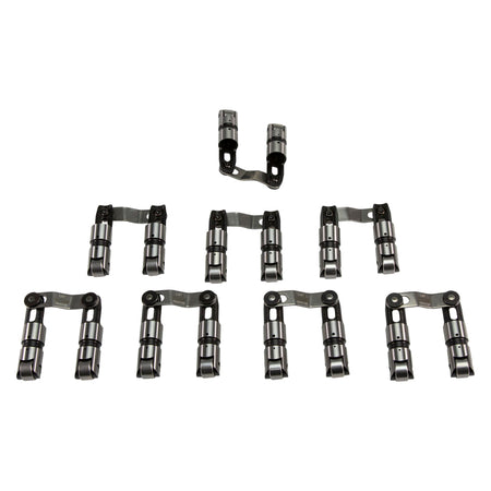 Sportsman Lifters from COMP Cams are designed to be a premium and lighter weight upgrade over Endure-X Lifters and a value alternative to the Elite Race option. Sportsman Lifters are offered in two configurations: a standard/traditional needle bearing axle/wheel design or an optional bronze bushing axle/wheel setup. And for Chevrolets, there are also left or right offset pushrod seat options. Each design features two pressurized EDM oil feeds to the axle, along with an edge orifice feed to the wheel. This design delivers a more reliable oil feed than most other options on the market. Sportsman Lifters also feature a shallower oil band than competitors’ versions for increased strength and rigidity, while internal machining helps to reduce weight. The body design utilizes a skirted wheel that strengthens the lifter ears and also provides more contact area with the lifter bore for further lifter stability. In addition, staked axles eliminate clips and provide robust axle retention. This permanent axle retention feature increases the stiffness of the lifter ears and helps prevent the ears from spreading. Sportsman Lifters are built from 8620 premium steel for increased strength and wear resistance and feature a captured link bar design. They utilize a tapered and slotted link bar tower for reduced weight and improved aesthetics. The lifters also feature a tall body to enable use in both standard and .300" tall lifter bores – the result is increased strength and less lifter bore wear.