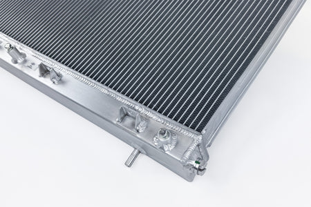 Having a High-Performance Radiator also becomes very important when converting from a factory style top mount intercooler to a front mount intercooler system. Moving the intercooler in front of the radiator restricts airflow and increases the temperature of air flowing through it. These factors are often overlooked but you need to compensate for both air restriction and higher air temperatures flowing through the radiator. The best solution is to upgrade to a CSF High-Performance Radiator.