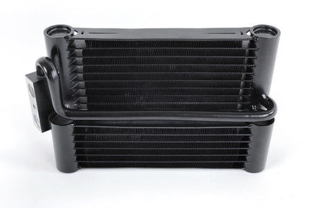 Utilizing CSF's AC Condenser technology, their innovative dual-core in-series system features an additional 5 rows of super-high pressure multi-channel micro-tubes on the rear side of the oil cooler. The high performance tube spec, along with the high-efficiency multi-louvered fin design allows for maximum surface area contact and an approximate 40% increase in heat rejection. The High-Performance Race-Spec Oil Cooler directly replaces the factory unit, easily bringing engine oil temperatures down to a consistent and manageable level, even under extreme & extensive driving conditions.