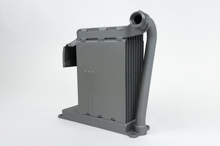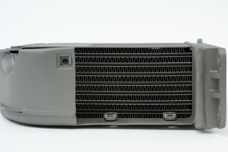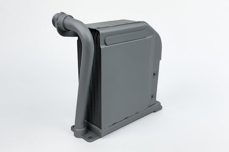 CSF understands Porsche purists want to keep an OEM look even when upgrading the performance and reliability of their 914s. This was a driving factor behind many of the cosmetic features of the oil cooler. The top of the cooler is stamped with the OE Part Number just below the CSF logo. In addition, the cooler comes in a Titanium color Thermal Heat Dispersion Cerakote finish. This advanced finish is durable, improves heat dissipation, is anti-corrosive, and offers a very classy OEM+ look to the cooler. A modern upgrade over the original. No details were overlooked in the design of the CSF cooler. The curvature of the case matches the original precisely and includes all the fine details. The spark plug aperture matches up perfectly with the valve cover for a perfect fit. Built into the machined base plate are small but important details such as the raised mounting pads and strengthening ridges.