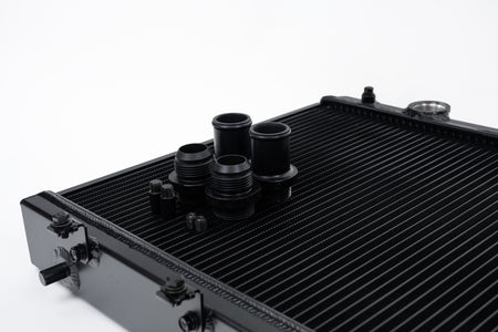 CSF has over 5 decades of experience manufacturing radiators. So when it comes to keeping your engine cool and your K-Swapped Civic/Integra running at its best, a CSF High-Performance All-Aluminum Radiator is the obvious choice. Designed to perform on the street or at the track, a performance radiator is a must-have for both high horsepower builds as well as race vehicles which need added cooling performance in motorsports environments. This radiator features a 2-Row core with CSF's exclusive B-Tube Technology: Unlike a regular oval shape "O" type radiator tube, CSF uses a specially engineered tube in the shape of a "B". These "B-tubes" are carefully formed and then brazed over the seam to seal. CSF is able to use thinner and lighter aluminum material (with better cooling efficiency) because this design is actually stronger than normal "O" shape tubes that are welded. The design (inlet in the middle of the tube that is seam brazed) increases the heat transfer surface area of the tubes by approximately 15% over regular tubes - producing the efficiency of two smaller tubes vs. one large tube within the same space criteria. With "B-tubes" you are able to get "dual liquid laminar flow". CSF also uses ultra efficient multi louvered fins that are carefully and precisely aligned to maximize airflow through each radiator core. Fin specifications are carefully measured and calculated for each application, and tested for maximum heat rejection efficiency in our wind-tunnel lab.