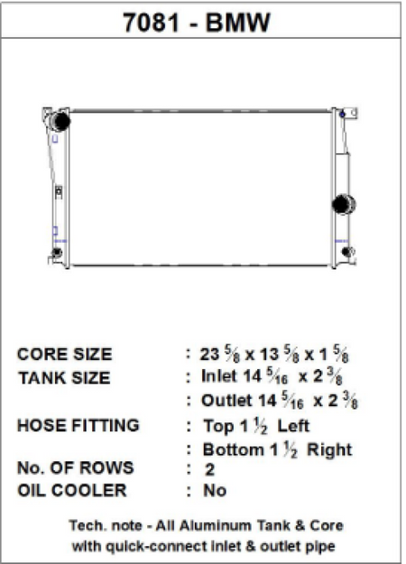 CSF has over 5 decades of experience manufacturing radiators. So when it comes to keeping your engine cool and your F2X/F3X running at its best, a CSF High-Performance All-Aluminum Radiator is the obvious choice. Designed to perform on the street or at the track, a performance radiator is a must-have for both high horsepower builds as well as race vehicles which need added cooling performance in motorsports environments. This radiator features a 2-Row core with CSF's exclusive B-Tube Technology: Unlike a regular oval shape "O" type radiator tube, CSF uses a specially engineered tube in the shape of a "B". These "B-tubes" are carefully formed and then brazed over the seam to seal. CSF is able to use thinner and lighter aluminum material (with better cooling efficiency) because this design is actually stronger than normal "O" shape tubes that are welded. The design (inlet in the middle of the tube that is seam brazed) increases the heat transfer surface area of the tubes by approximately 15% over regular tubes - producing the efficiency of two smaller tubes vs. one large tube within the same space criteria. With "B-tubes" you are able to get "dual liquid laminar flow". CSF also uses ultra efficient multi louvered fins that are carefully and precisely aligned to maximize airflow through each radiator core. Fin specifications are carefully measured and calculated for each application, and tested for maximum heat rejection efficiency in our wind-tunnel lab.