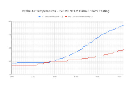CSF's Porsche 991 Turbo intercoolers have been race-tested, logged, and fully validated by some of the world's best Porsche tuners. These intercoolers have been regarded as the "Go-To" option for the best performance and value available in the performance aftermarket. From first glance the increase in width from the OEM's 80mm core to the CSF's 115mm width is very apparent. Critical for vehicles running performance tunes with bolt-on modifications. Considered a mandatory upgrade for vehicles running upgraded turbo systems. The larger capacity CSF bar/plate core design can handle significantly more airflow + increased boost pressures compared to the OEM intercooler system. CSF's 100% TIG welded cast end tanks, paired with its high-efficiency bar/plate intercooler core. Compared to the OEM style tub/fin core, which is crimped onto the plastic end tanks. The weaker OEM design can crack under high boost or vibrations typical to race conditions. The design of CSF's end tanks allows for airflow to be distributed evenly throughout the entire intercooler compared to the OEM intercooler design which is much shallower. The OEM design makes it more difficult for airflow to reach the top/bottom tube sections at the ends of the intercooler. CSF's Porsche 991 Turbo intercoolers are finished with an aero-space grade, Nano-particle, heat dispersion coating that dissipates heat around 35% better than uncoated raw aluminum. The coating is applied in California, USA by an aerospace coating company who also supplies coatings for Boeing. This unique coating is a key feature to achieving world-record performance, exclusively available from CSF.