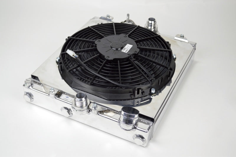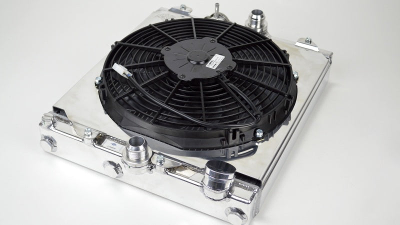 CSF Universal Half Radiator w/-16AN & Slip-On Fittings/12in SPAL Fan & Shroud