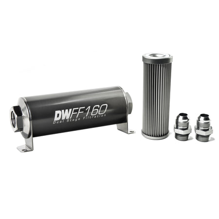 DeatschWerks Stainless Steel 10AN 10 Micron Universal Inline Fuel Filter Housing Kit (160mm)
