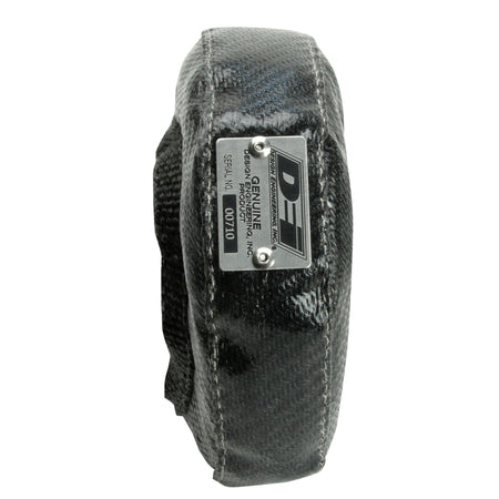 We raised the bar. The most technologically advanced turbo shield ever! We incorporated all our experience to build the absolute best turbo shield on the market. By developing advanced textiles and diving deep into what is needed to control turbo heat, we developed the GEN-3 Onyx Black Turbo Shield. A Silicone coated Onyx Black outer layer with multiple stainless steel and silica inner layers. Without a doubt the strongest, most heat resistant shield available. OUTER SHELL - Coated in silicone to insulate and hold up under extreme conditions. - Prevents fraying & encases seams to make them over 4 times stronger INSULATION LAYER - Thick layer of silica insulation keep heat in turbo shield and turbo housing. - Silica has a low thermal conductivity making one of the best insulators. INNER LAYER - Stainless steel, glass fiber & silicone adds to insulating and thermal properties. - Increases seam strength, durability and insulation value. INNER COVER - Stainless Steel fabric holds up against the highest temps. - Will not break down or become brittle with heat. Measuring your turbo size DEI Turbo shield sizes are based on two basic measurements. The first measurement is the circumference of the turbo not including the flange. The second measurement is the width of the turbo at it's widest point not including the flanges. After measuring, refer to the chart below to find the correct shield. Our T22 and T25/28 shields are designed for use on internally gated housings. They will have a cutout in the wastegate area to allow for a tight fitment. TURBO MEASUREMENTS CHART TURBO - CIRCUMFERENCE - WIDTH T22 - 15" - 2.25" T25/28 - 15" / 16" - 2.5" T3 - 15" / 16" - 2.5" T4 - 20" / 22" - 2.75" T6 - 26" - 3.75"