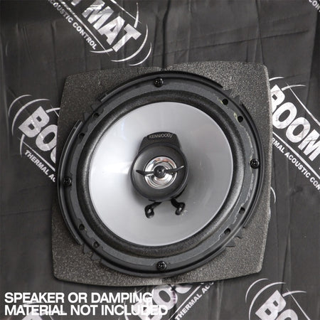 Boom Mat Speaker Baffles solve the problem of rattles and vibrations caused by speakers and protects the back of speakers from damage. Boom Mat Speaker Baffles maximize speaker performance by isolating the correct frequency responses while damping reverberation in the sheet metal and panel to frame resonance. Also forms a water tight protective shell to prevent moisture intrusion. Made from a closed cell polyethylene to enhance frequency response for improved sound clarity. Easy conformability in tight spaces for a professional installation. Isolates frequency responses and prevents sound from migrating to unfavorable areas in the vehicle such as door panels. Part# Description Width Height Depth 050310 4 in. Round 6 in. 6 in. 3.5 in. 050311 4 in. Round Slim 6 in. 6 in. 2.5 in. 050320 5.25 in. Round 6.5 in. 6.5 in. 4 in. 050321 5.25 in. Round Slim 6.5 in. 6.5 in. 2.5 in. 050330 6.5 in. Round 7 in. 7 in. 3.5 in. 050331 6.5 in. Round Slim 7 in. 7 in. 3 in. 050340 6.75 in. Round 7.5 in. 7.5 in. 5 in. 050341 6.75 in. Round Slim 7.5 in. 7.5 in. 3 in. 050350 4 in. x 6 in. Oval 8 in. 6 in. 3.5 in. 050351 4 in. x 6 in. Oval Slim 8 in. 6 in. 2.5 in. 050360 5 in. x 7 in.Oval 8.5 in. 7 in. 4.5 in. 050361 5 in. x 7 in.Oval Slim 8.5 in. 7 in. 3 in. 050370 6 in. x 8 in.Oval 9.5 in. 7 in. 5 in. 050371 6 in. x 8 in.Oval Slim 9.5 in. 7 in. 3 in. 050380 6 in. x 9 in.Oval 10.5 in. 7.75 in. 4.5 in. 050381 6 in. x 9 in.Oval Slim 10.5 in. 7.75 in. 3.5 in. Maximize speaker performance Dampen vibrations Water-tight shell Sold in packages of 2