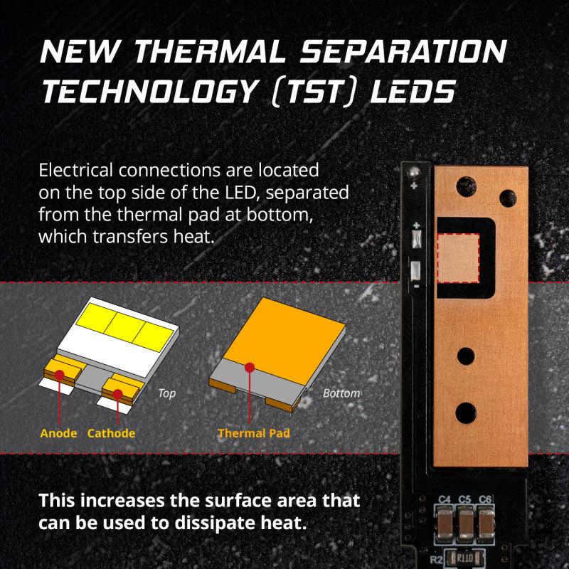 Features Advanced TST LED Technology for industry-leading performance. Internal cooling for superior reliability. Fully integrated design, no wires or external drivers. Direct replacement bulb with compact fitment. Backed by limited lifetime warranty. Designed and engineered in USA (Patents Pending). Introducing the SL2 Pro LED Bulb! As a replacement for the popular SL1 LED bulb, the new SL2 Pro LED features some major upgrades: next-generation TST LED technology, an integrated top-mount fan, and a fully-integrated, wire-free design. As a direct plug-and-play replacement, it provides a significant increase in output, in a compact package. Next-Generation TST Technology. The SL2 Pro features new thermal separation technology (TST) LEDs. TST LEDs are designed with electrical connections on the top which lowers thermal resistance, allowing the SL2 Pro to run at higher power levels than traditional LED bulbs, while maintaining focus. Correct Optical Focus. The SL2 Pro LED bulb was engineered to focus light just like your original bulb, matching the original beam pattern while providing an increase in total output. Instead of using the smallest LEDs possible which can lead to streaks, lines, and harsh cutoffs, the SL2 Pro was optimized to provide a smooth beam pattern, while maintaining focus. Internal Cooling. The SL2 Pro features an integrated top-mounted fan which provides maximum cooling efficiency, superior thermal management and long-term reliability. Since the fan is sealed inside the housing, there's no concerns about damage from dust or moisture over time. NOTE: LED bulbs are legal in the USA for Fog Light use only. Not compliant with DOT / FMVSS108 and not street legal in the USA for Headlights. International legality varies by country.