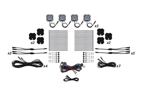 Features Allows you to mount eight rock lights under your vehicle. Convenient center-mount or magnet mount installation. Available in single-color or multicolor output. Includes all necessary wiring and mounting hardware. Aluminum heatsink with signature Ico Bezel shape. Thick, durable lenses, engineered to spread light. Engineered and Assembled in USA. Overview Looking to light up the trail at night? Look no further. Introducing the Stage Series LED Rock Light Installer Kit! Designed for superior durability and maximum performance, Stage Series LED Rock Lights have set a new standard in the offroad category. This kit includes all the wiring and hardware necessary to mount eight Stage Series LED rock lights, making it easier than ever to add rock lights to your vehicle. Single-Color or RGBW. The Stage Series Rock Lights in this kit are available in a single-color or multicolor output. Our single-color Stage Series Rock Lights provide a peak output of 800 lumens, with a true power draw of over 10 watts, illuminating in a 5700K color temperature. Our RGBW LED Rock Lights provide plenty of output in any color you can think of. Thanks to the independent white chip, these RGBW LED rock lights will also light up in a bright, pure white color when you want to maximize output. Mount it Your Way. Our Rock Light Installer Kit can be mounted using the center bolt mounting point that is neatly hidden underneath the lens and comes standard, or you can select the magnet mount option. Our magnet mounts feature an overmolded design that keeps your rock light secure using the integrated mounting hole. With N42 magnets providing an approximate pull/holding force of 35lbs, you can rest assured that the magnet won't go anywhere!